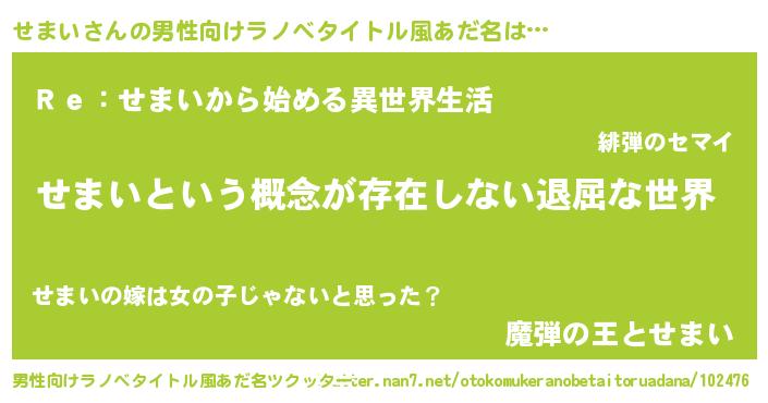| 女子向けラノベタイトル風あだ名 | 『異世界で失敗しない100のせまい』 |