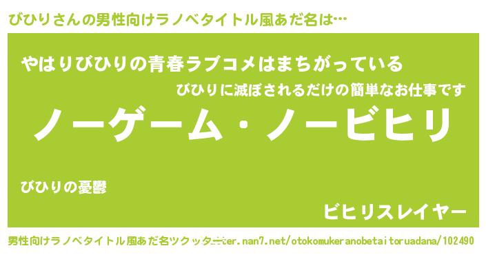 | 女子向けラノベタイトル風あだ名 | 『死神びひりの再婚』『びひり伯爵の花嫁』 |