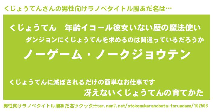 | 伝説のあだ名 | 『救世主となる錬金術士くじょうてん』 |