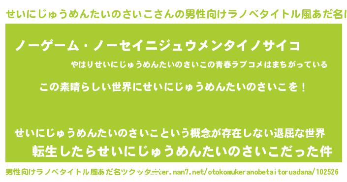| 意味不明あだ名 | 『住所不定無職せいにじゅうめんたいのさいこ(98歳)』 |