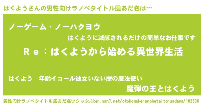 | ヒーロー風カッコイイあだ名 | 『最強戦士ハクヨウ』『仮面ハクダー』 |
