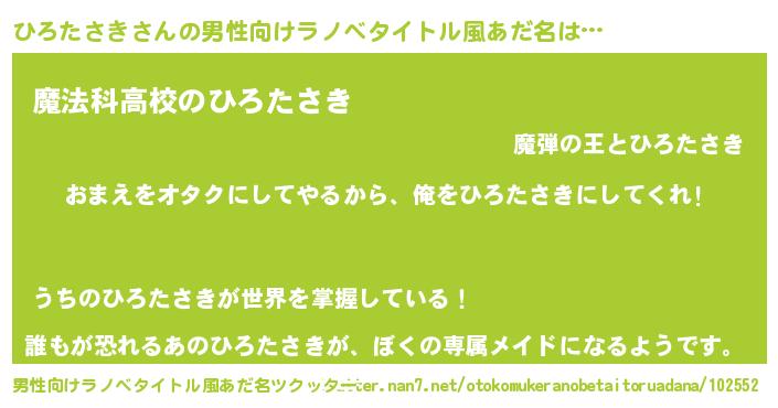 | 女子向けラノベタイトル風あだ名 | 『ひろたさき夫妻のなれそめ』 |