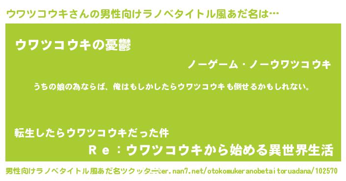 | 女子向けラノベタイトル風あだ名 | 『ウワツコウキの婚約者』 |