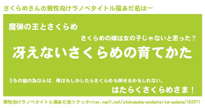 | 欧米人風あだ名 | 『さくらめ・ステッグマイヤー』 |