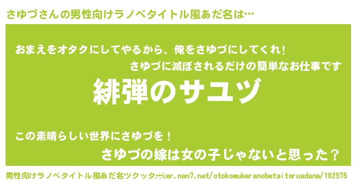 | 女子向けラノベタイトル風あだ名 | 『シンデレラさゆづ家の靴箱館』 |