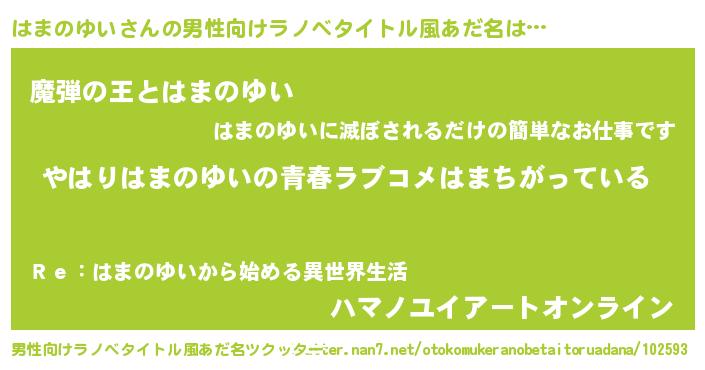 | ファンタジー風あだ名 | 『エターナルハマノユイー』『ハマフェル』 |