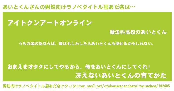 | 女子向けラノベタイトル風あだ名 | 『あいとくん伯爵の花嫁』 |