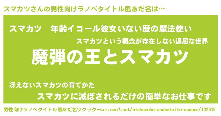 | 意味不明あだ名 | 『住所不定無職スマカツ(77歳)』 |