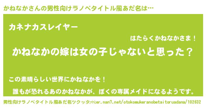 | 女子向けラノベタイトル風あだ名 | 『かねなか様がみてる』 |