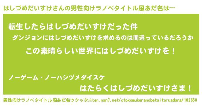 | 意味不明あだ名 | 『住所不定無職はしづめだいすけ(8歳)』 |