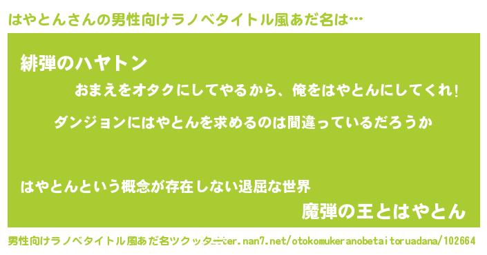 | 女子向けラノベタイトル風あだ名 | 『はやとんは平凡を望む』 |