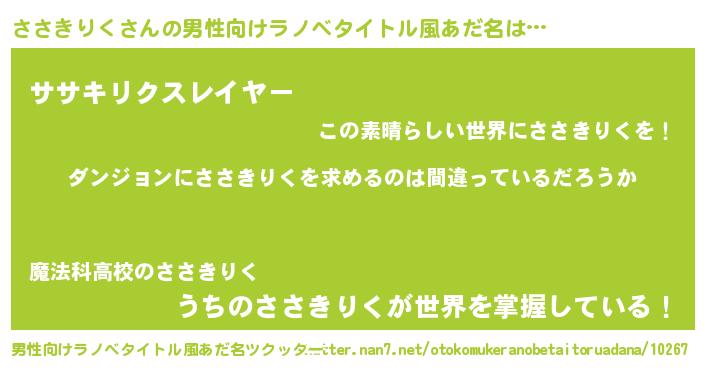 | 肩書あだ名 | 『ささきりく塾長』『ささきりく中尉』 |