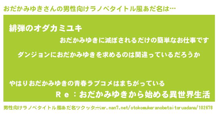 | 女子向けラノベタイトル風あだ名 | 『おだかみゆきは平凡を望む』 |