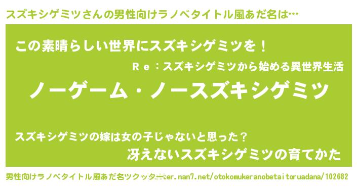 | 女子向けラノベタイトル風あだ名 | 『スズキシゲミツ恋絵巻』 |