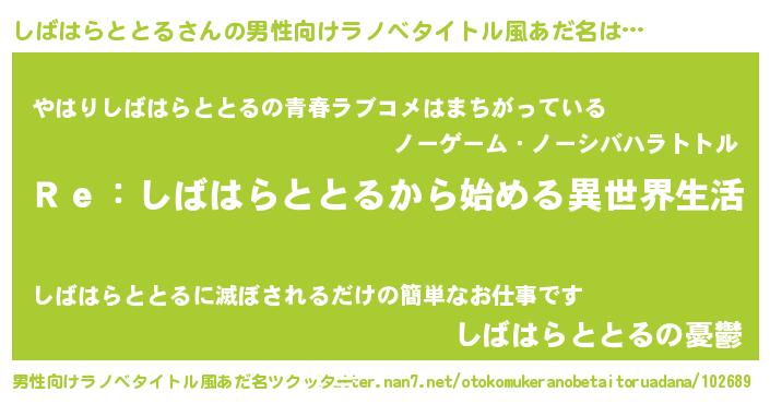 | 女子向けラノベタイトル風あだ名 | 『闇のしばはらととる』 |