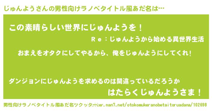 | 伝説のあだ名 | 『魔王と互角に渡り合う占い師じゅんよう』 |