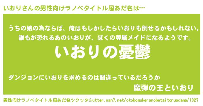 | 胡散臭い通販商品みたいなあだ名 | 『必ず成功する霊験あらたかなお札…その名も「いおり」』 |
