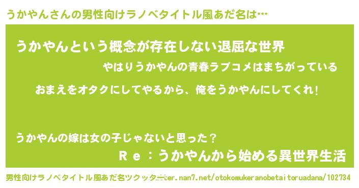 | 肩書あだ名 | 『うかやん助手』『うかやん先生』 |
