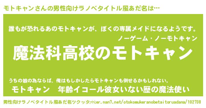| 女子向けラノベタイトル風あだ名 | 『モトキャンなんてお断りですっ。』 |