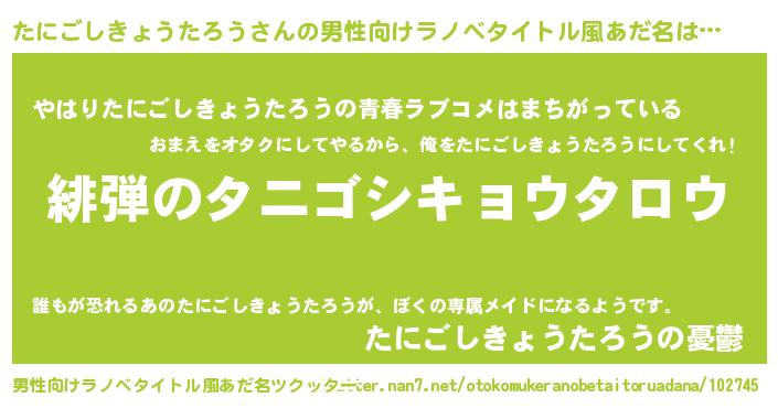 | 女子向けラノベタイトル風あだ名 | 『シンデレラたにごしきょうたろう家の靴箱館』 |