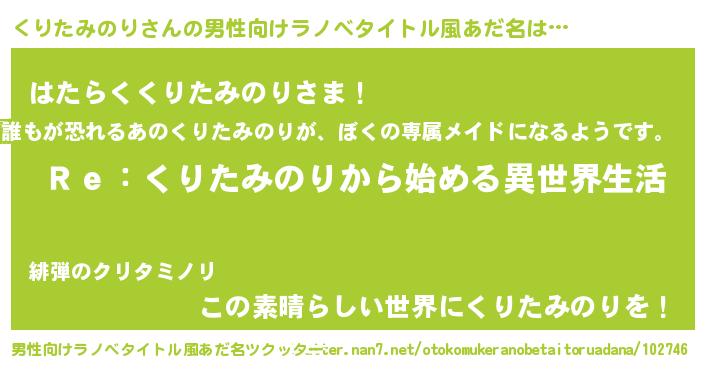 | 意味不明あだ名 | 『自称くりたみのり』 |
