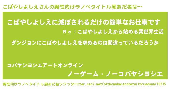 | 女子向けラノベタイトル風あだ名 | 『こばやしよしえは平凡を望む』 |
