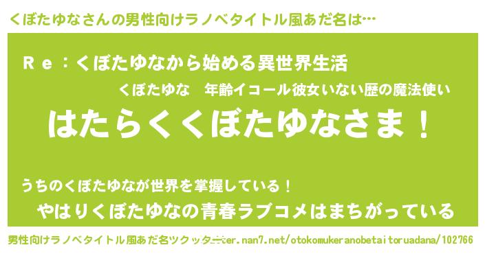 | ファンタジー風あだ名 | 『ゼクボトゥ』『エターナルクボタユナー』 |