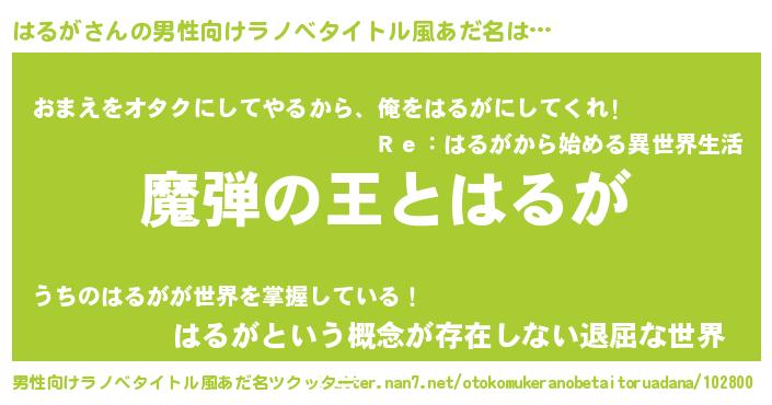 | 胡散臭い通販商品みたいなあだ名 | 『世界中を虜にした世界で10本だけ現存している希少なブランデー…その名も「はるが」』 |