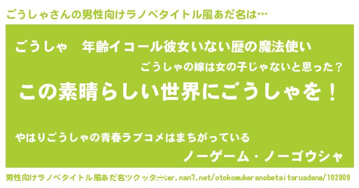 | 女子向けラノベタイトル風あだ名 | 『乙女ゲームの破滅フラグしかない悪役ごうしゃに転生してしまった…』 |