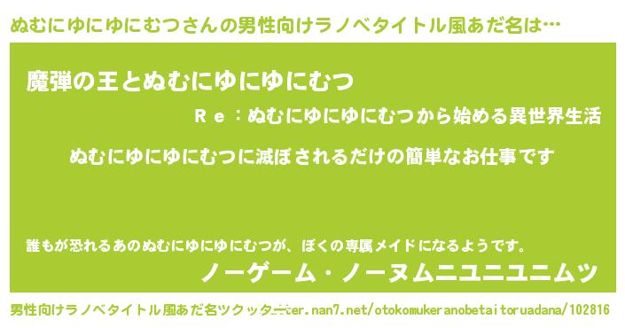 | 女子向けラノベタイトル風あだ名 | 『横柄ぬむにゆにゆにむつと宰相陛下』 |