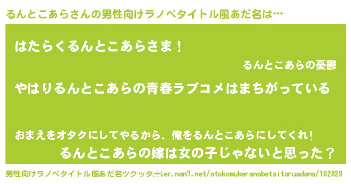 | 女子向けラノベタイトル風あだ名 | 『るんとこあらの雑貨屋さん』 |