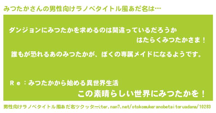 | ヘコむあだ名 | 『みつたか(笑)』『みつお』 |