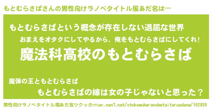 | ヘコむあだ名 | 『もとむらさば(笑)』『もとぷりん』 |