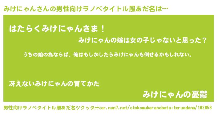 | 女子向けラノベタイトル風あだ名 | 『みけにゃんの婚約者』 |