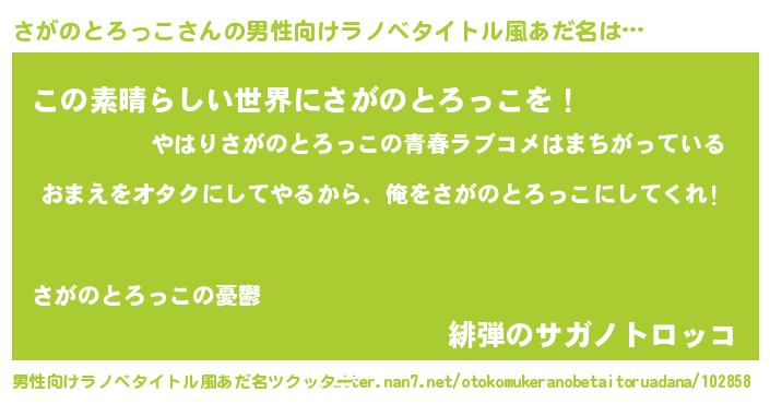 | 胡散臭い通販商品みたいなあだ名 | 『100人中100人が認めたマグネット磁石…その名も「さがのとろっこ」』 |