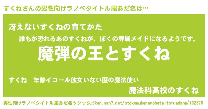 | 女子向けラノベタイトル風あだ名 | 『すくねが死なない童話 林檎のすくねの診療簿』 |
