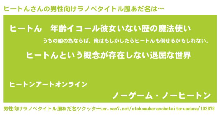 | 胡散臭い通販商品みたいなあだ名 | 『来世でも幸せになれる健康食品…その名も「ヒートん」』 |
