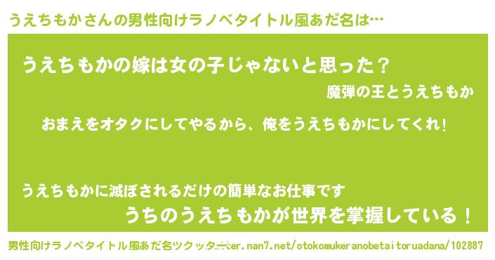 | 女子向けラノベタイトル風あだ名 | 『うえちもか夫妻のなれそめ』 |