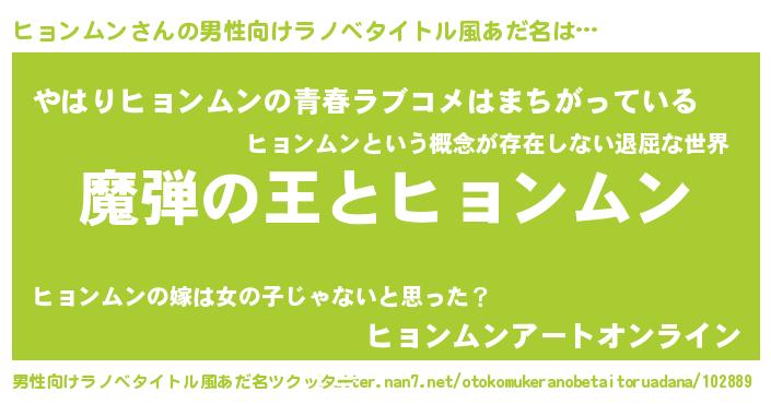 | 意味不明あだ名 | 『住所不定無職ヒョンムン(41歳)』 |