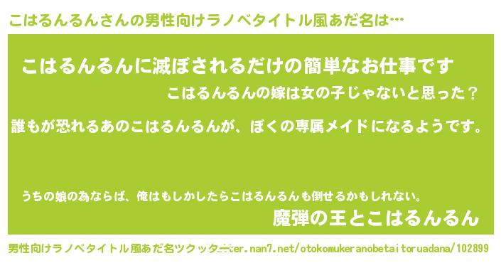 | 女子向けラノベタイトル風あだ名 | 『異世界でカフェこはるんるんを開店しました。』 |