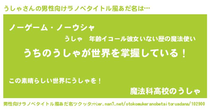 | 胡散臭い通販商品みたいなあだ名 | 『モンドセレクションを受賞した隕石のかけら…その名も「うしゃ」』 |