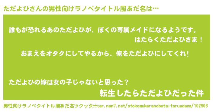 | ヘコむあだ名 | 『ただよひ(笑)』『ただっ子』『豆乳』 |