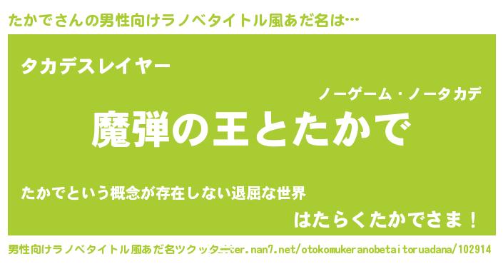 | 女子向けラノベタイトル風あだ名 | 『たかでが死なない童話 林檎のたかでの診療簿』 |