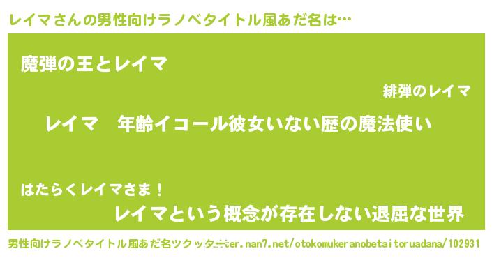 | 女子向けラノベタイトル風あだ名 | 『レイマの玉の輿計画!』 |