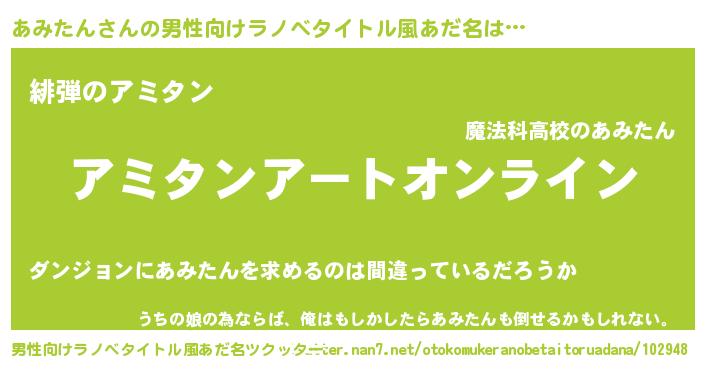 | 女子向けラノベタイトル風あだ名 | 『誰かこのあみたんを説明してください! ~契約から始まるウェディング~』 |