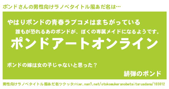 | 女子向けラノベタイトル風あだ名 | 『誰かこのポンドを説明してください! ~契約から始まるウェディング~』 |