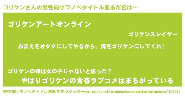 | 女子向けラノベタイトル風あだ名 | 『ゴリケン夫妻のなれそめ』 |