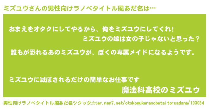 | ヒーロー風カッコイイあだ名 | 『ネオミズユウ』『正義の使者ミズユウ』 |