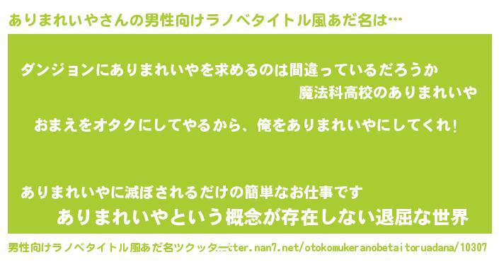 | 胡散臭い通販商品みたいなあだ名 | 『100人中100人が認めたマグネット磁石…その名も「ありまれいや」』 |