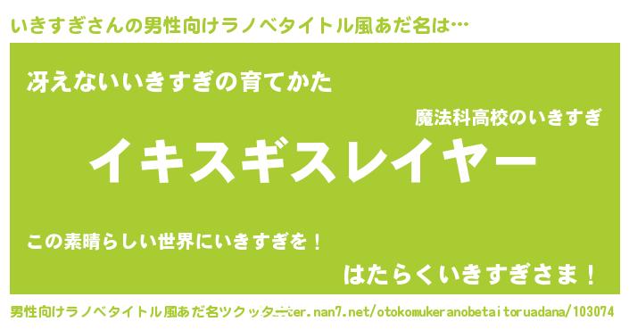 | ヒーロー風カッコイイあだ名 | 『超時空戦士イキスギ』『仮面イキダー』 |